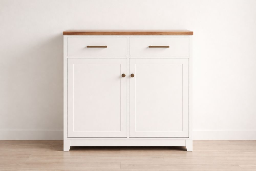 Buffet bas en MDF et bois d'acacia Blanc 2 portes 2 tiroirs