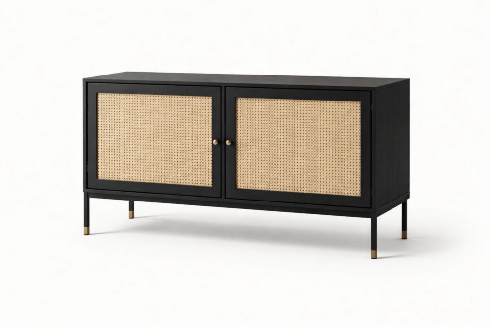 Buffet en bois massif avec portes en cannage 120x40x70cm(L×l×H)