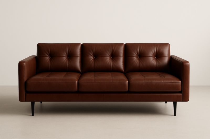 Canapé marron en PU avec structure en bois de hêtre et pieds en acier peint – 210×85×80 cm